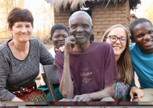 When we walk into the dusty clearing surrounding a quaint little hut, an old man hobbles out to meet us. He calls something in rapid Chichewa to a couple boys nearby. They run and grab some burlap sacks on which we sit to avoid getting our cloths too dusty.