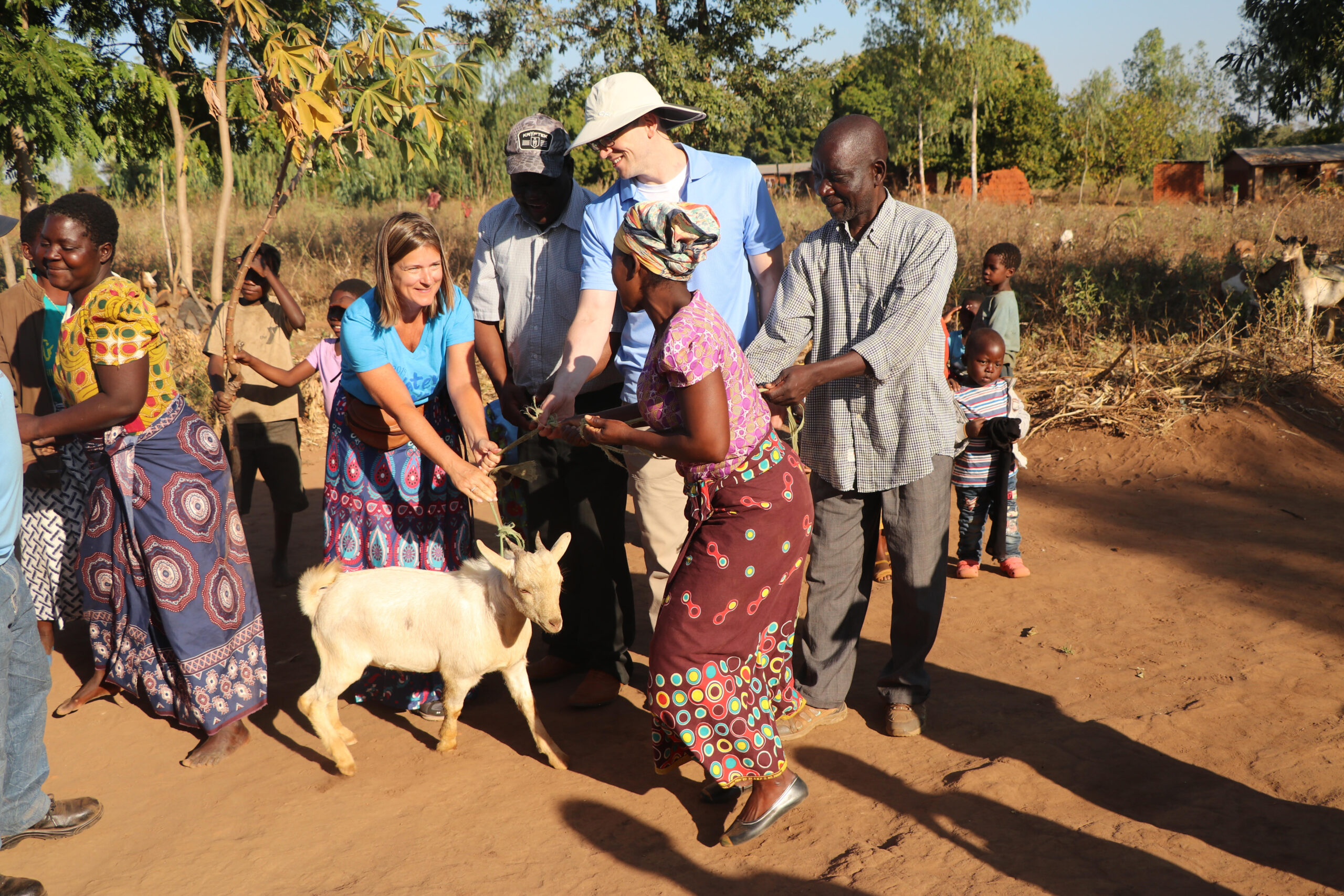Our first stop was a primary school, where over 750 children are receiving an education. Their smiles warmed my heart. Next we visited a farm where we saw the way solar panels are being used to create an irrigation system, allowing crops to grow when it’s not the rainy season. Third, we saw a maize mill where corn is ground to make flour, and the warehouse where excess is stored to help get through the lean months. Finally, we visited Libwalo Village, where we were welcomed so warmly, with lots of smiles, and singing and dancing. We were able participate in a goat pass-on ceremony. When VIP gives a family a goat, they have to pass on one of its kids to another vulnerable family. Today, we saw the ceremony where one family gives another the new goat, with so much joy. We also helped to give the goats de-worming medication, which was quite interesting. A meal was prepared for us, and it was delicious!