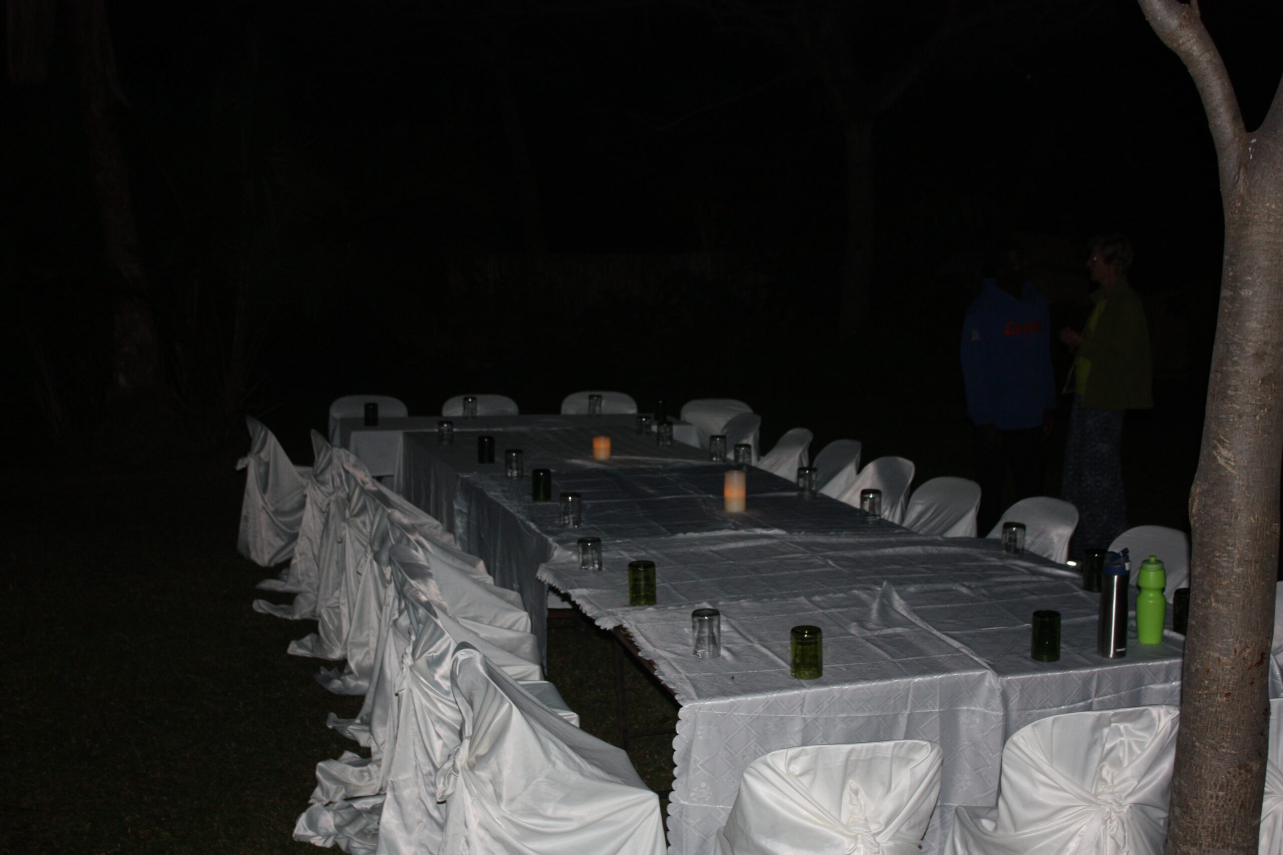 Everyone was tired as we piled into the Landcruiser for our drive to the Blantyre Airport on Wednesday morning for the team’s flight to South Africa. Liz always packs a lot into the friendship trips and our team was exhausted, both physically and emotionally. The last minute change of plans hadn’t helped the team get any more rest either. The original plan had called for the team to spend Tuesday night in Blantyre after leaving Liwonde National Park, so that they could get a full night’s rest and make their leisurely way to the airport after a late breakfast. However, the team hadn’t been satisfied with the idea of leaving Malawi like this, departing quietly like strangers in the night. At our last meeting before heading out on safari the team had asked that the plan be changed. They wanted to return to Zomba on Tuesday night so that they could take the VIP Malawian staff out to a “Thank You” dinner and give them all tokens of their gratitude and friendship. This was the first time that a friendship team had ever asked to do this, and knowing how hard the Malawian VIP staff works to make every friendship trip a success, Liz immediately agreed to the change and told the team how much the staff would appreciate it. And so we had met the staff at N’amangazi Farm on Tuesday night, and after giving a giving a short thank you speech and personalized gift bag to every VIP Senior staff member and our three translators, we headed off together one last time for a dinner under the stars.