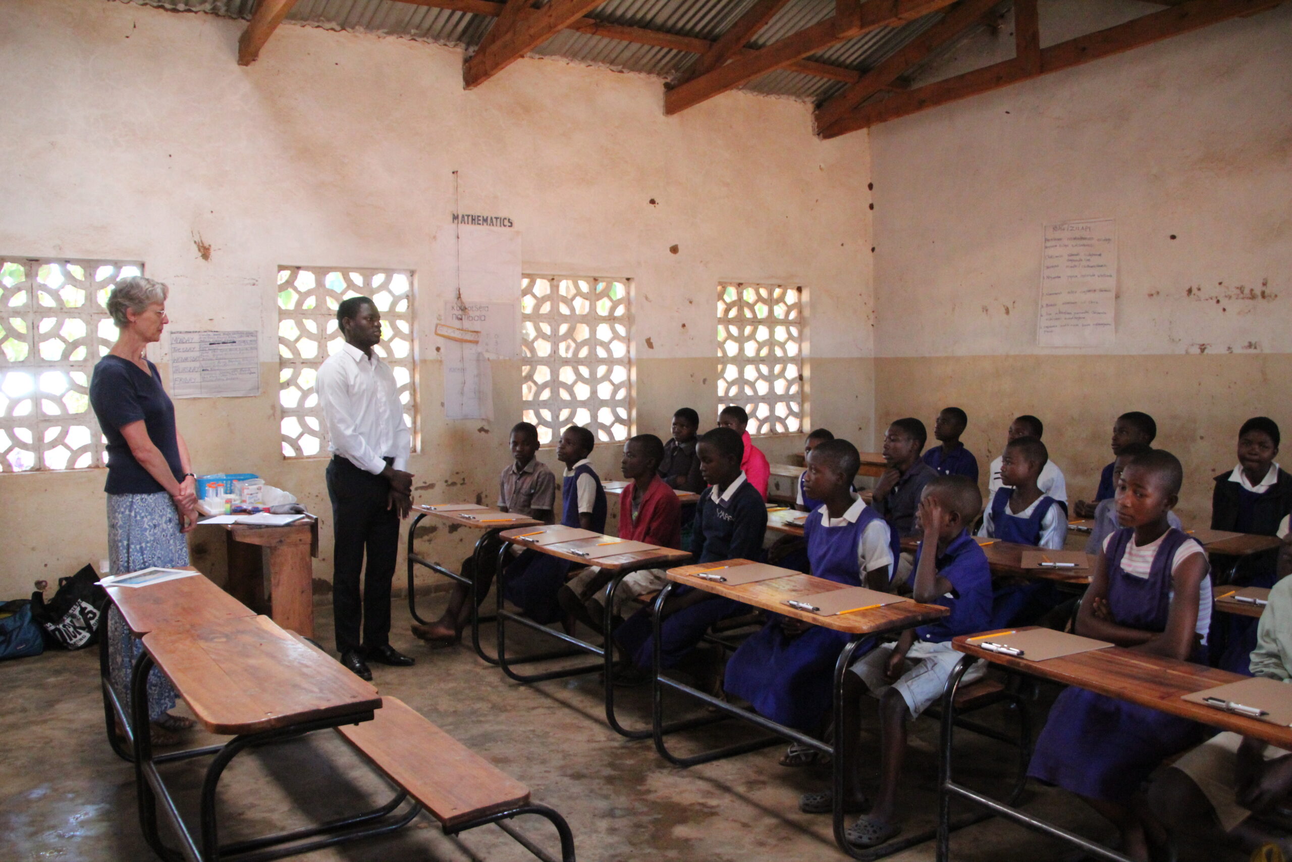 We woke up bright and early on Monday morning so that we could take Trudi to her first day as a guest science teacher. Trudi is taking a month off from her research job with a pharmaceutical company so that she can provide hands on science lessons and experiments for students in the Sakata region. Primary school in Malawi is rarely interactive. The classes are so crowded, often 40 or more students in every room, that lessons are very teacher centric, by necessity. Trudi will be working with 20 students every day and has provided learning materials so that every student that she works with will not only be able to watch her conduct experiments, but will be able to conduct their own experiments along with her. VIP Stalwart Sydney Chikelema will be working with Trudi as her assistant and translator.