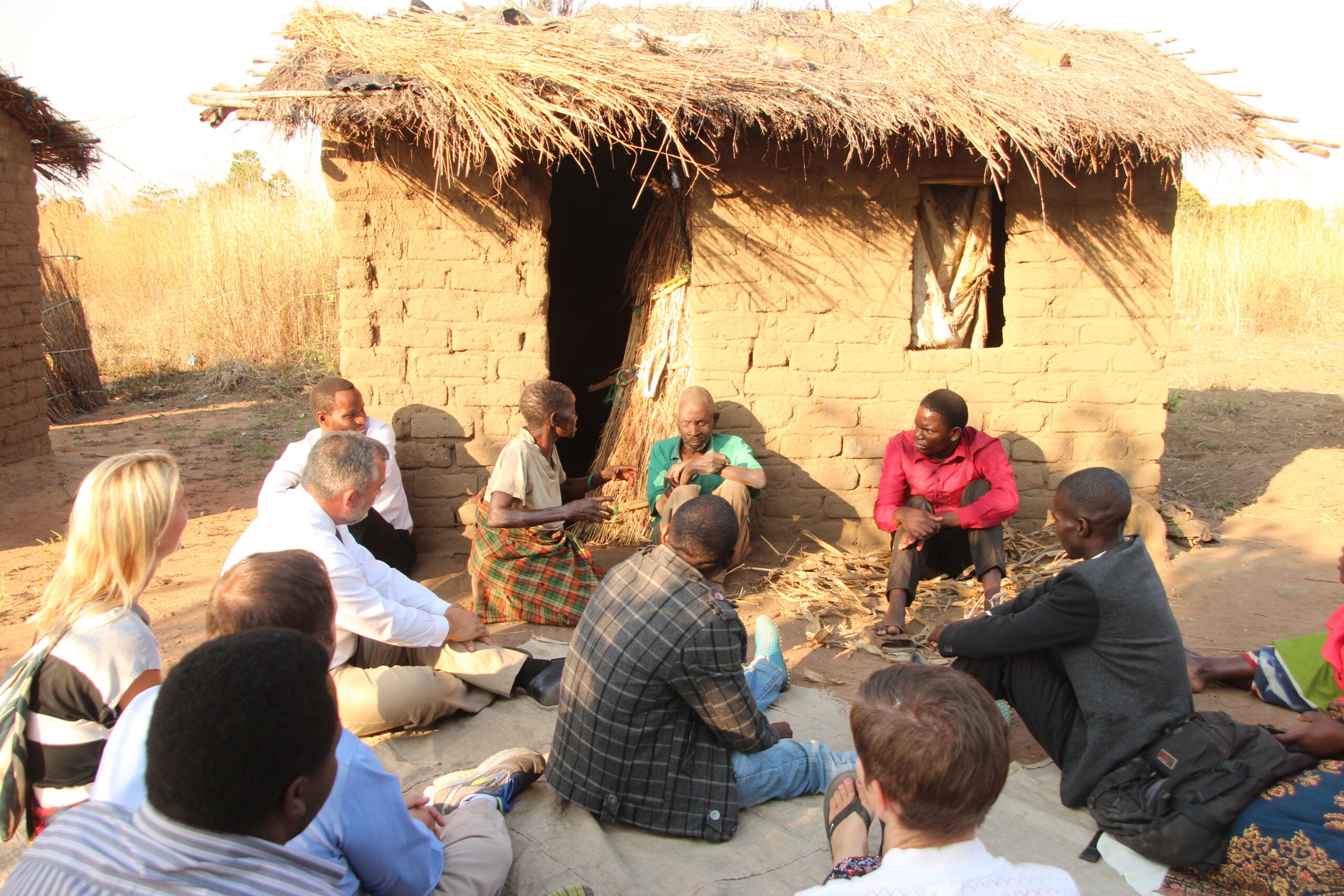After our visit with Judith’s family the team split up so we could visit six more vulnerable families. Tom, Susan, Jim, Jennie and Liz visited with an elderly brother and sister who Liz (who is not prone to hyperbole when discussing poverty) unhesitatingly called “the poorest family I have ever visited.” When our team arrived at the small cluster of thatched-roof buildings that makes up the family compound they found the brother and sister waiting for them on the ground. Thatched roofs are always a sign of deep poverty, because even when they are in good condition, they inevitably leak during the rainy season. These roofs were not in good condition. They had large holes in them, which allowed the sun to stream into the homes. In the rainy season their dirt floors must have been filled with muddy puddles.